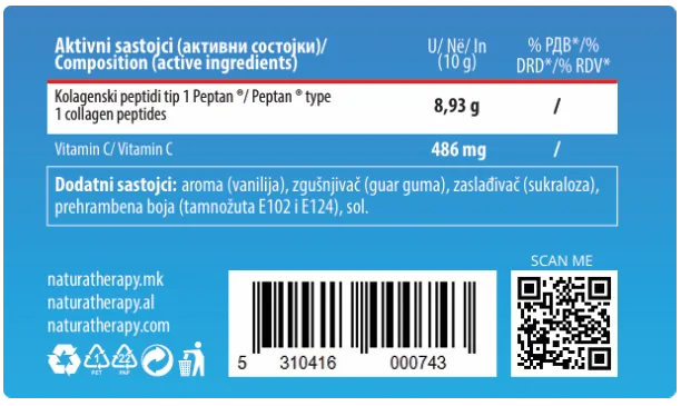 - Hidrolizirani kolagenski peptidi za sigurnu apsorpciju i efikasnost.