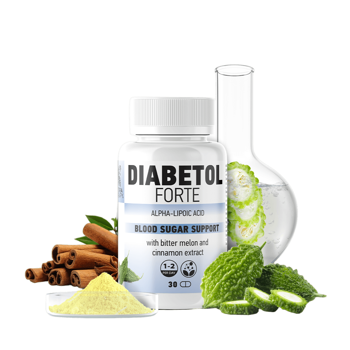 Redovnom, svakodnevnom upotrebom Diabetol Forte preparata nakon samo 2 do 3 nedelje, beleži se smanjenje nivoa glukoze u krvi (smanjenje vrednosti jutarnje glikemije) zahvaljujući poboljšanju insulinske osetljivosti i efikasnosti, kao i poboljšanom korišćenju glukoze.